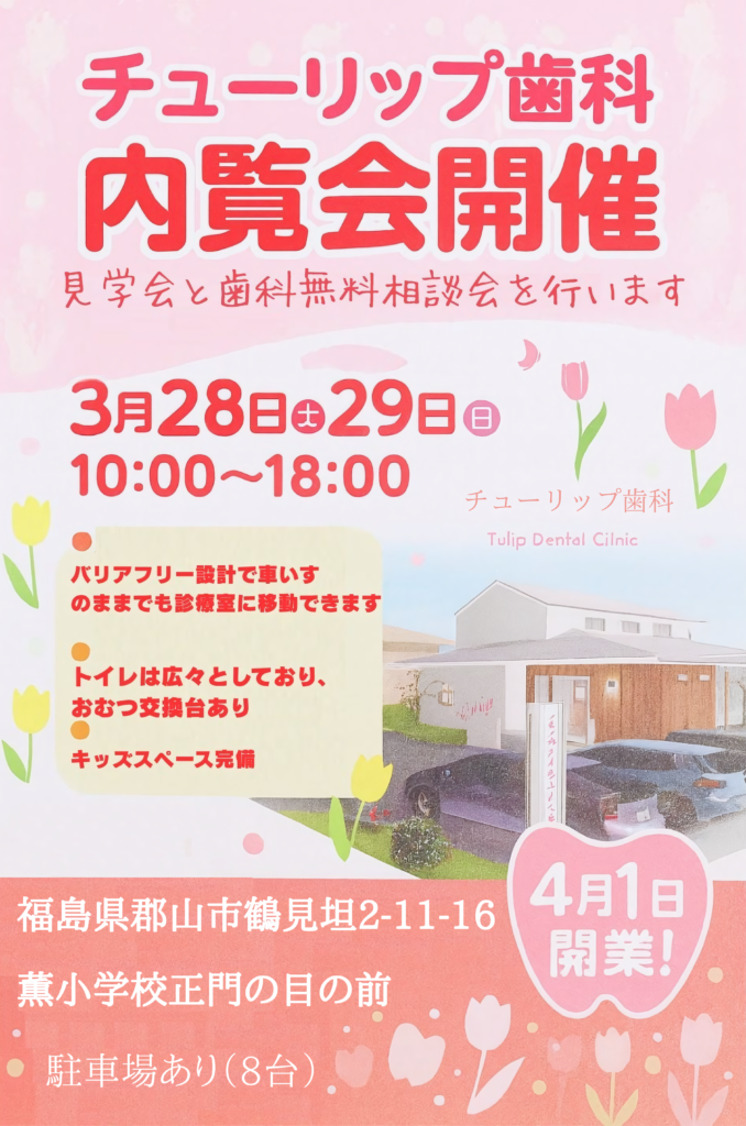 チューリップ歯科は開院に先立ち、内覧会を開催いたします。
